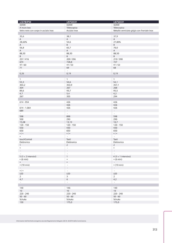 Informazioni dell’etichetta energetica secondo Regolamento Delegato (UE) N. 65/2014 della Commissione.