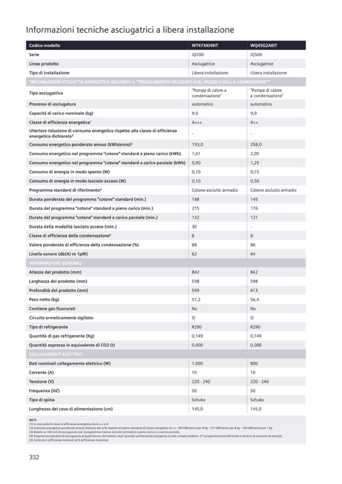 (4) Programma standard di asciugatura al quale fanno riferimento i dati riportati sull'etichetta energetica e sulla scheda prodotto. E' il programma più efficiente in termini di consumo di energia.