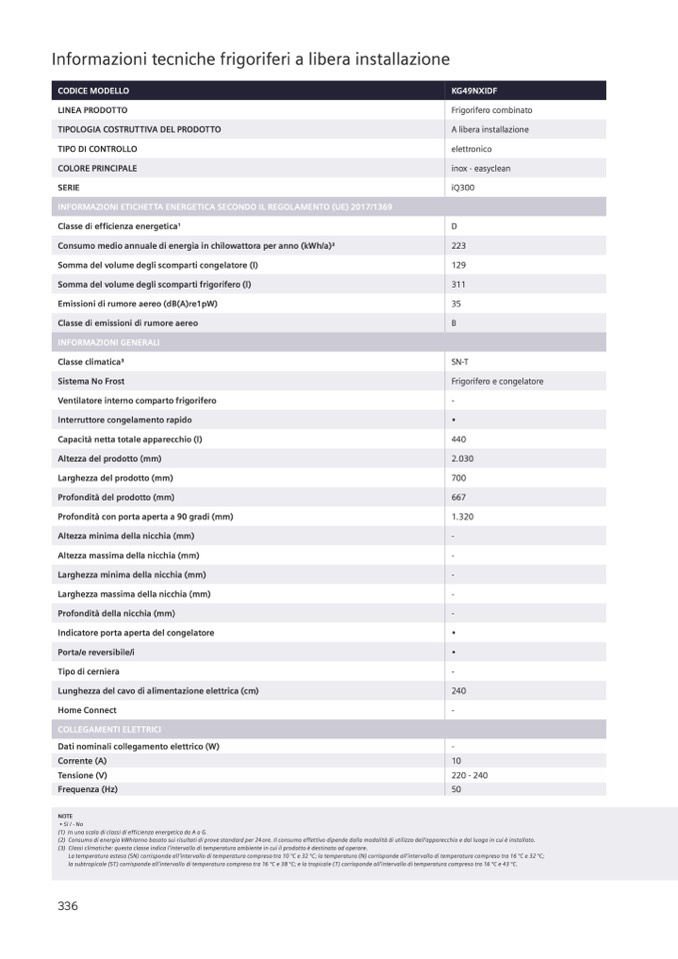 La temperatura estesa (SN) corrisponde all’intervallo di temperatura compreso tra 10 °C e 32 °C; la temperatura (N) corrisponde all’intervallo di temperatura compreso tra 16 °C e 32 °C;
