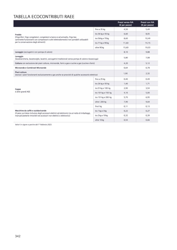 Valori in vigore a partire dal 1° febbraio 2023.