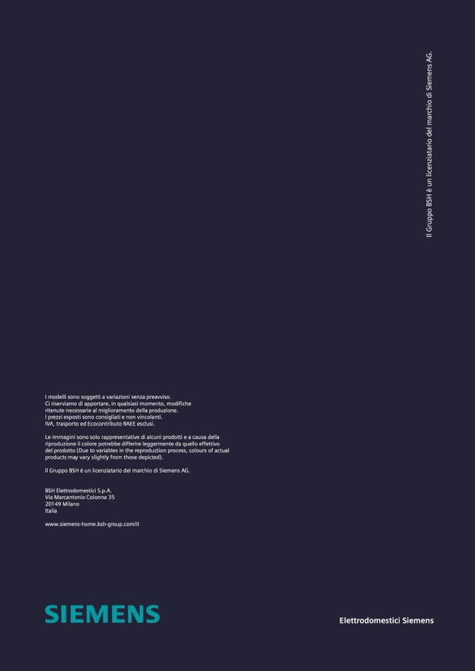 ll Gruppo BSH è un licenziatario del marchio di Siemens AG.