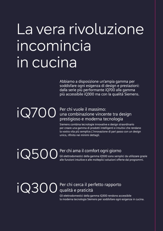 la moderna tecnologia Siemens per soddisfare ogni esigenza in cucina.