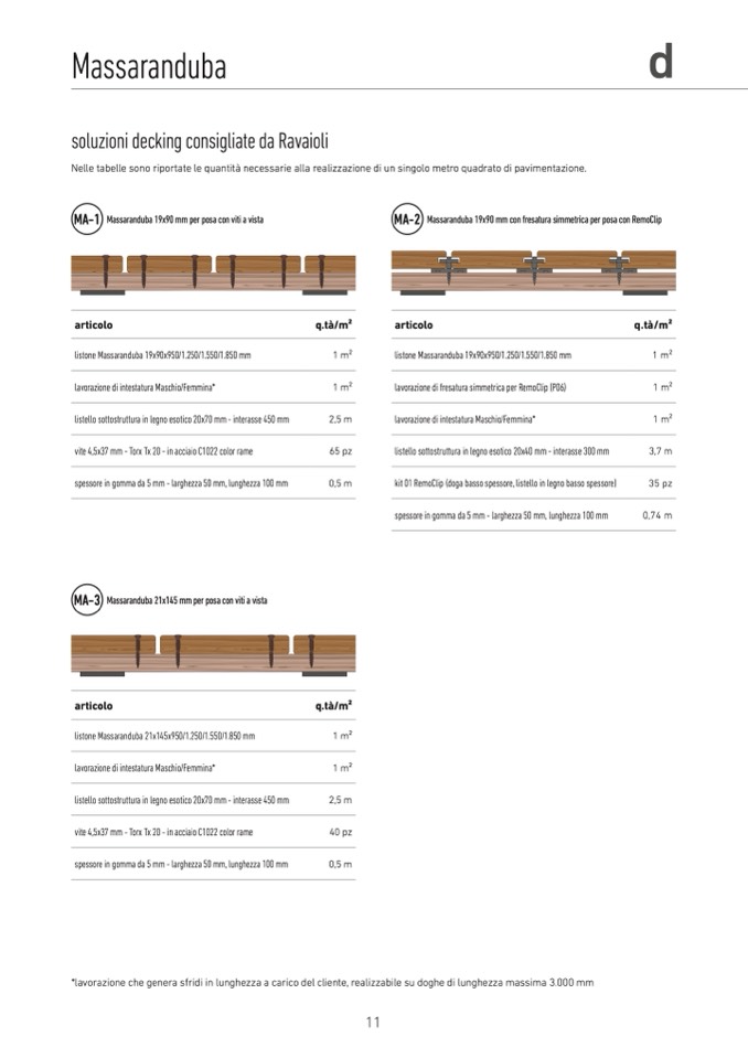 *lavorazione che genera sfridi in lunghezza a carico del cliente, realizzabile su doghe di lunghezza massima 3.000 mm