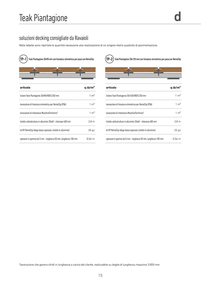 *lavorazione che genera sfridi in lunghezza a carico del cliente, realizzabile su doghe di lunghezza massima 3.000 mm