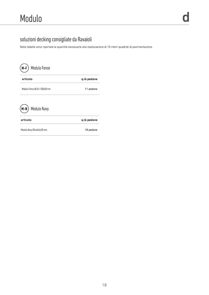 Nelle tabelle sono riportate le quantità necessarie alla realizzazione di 10 metri quadrati di pavimentazione.