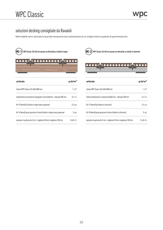 Nelle tabelle sono riportate le quantità necessarie alla realizzazione di un singolo metro quadrato di pavimentazione.