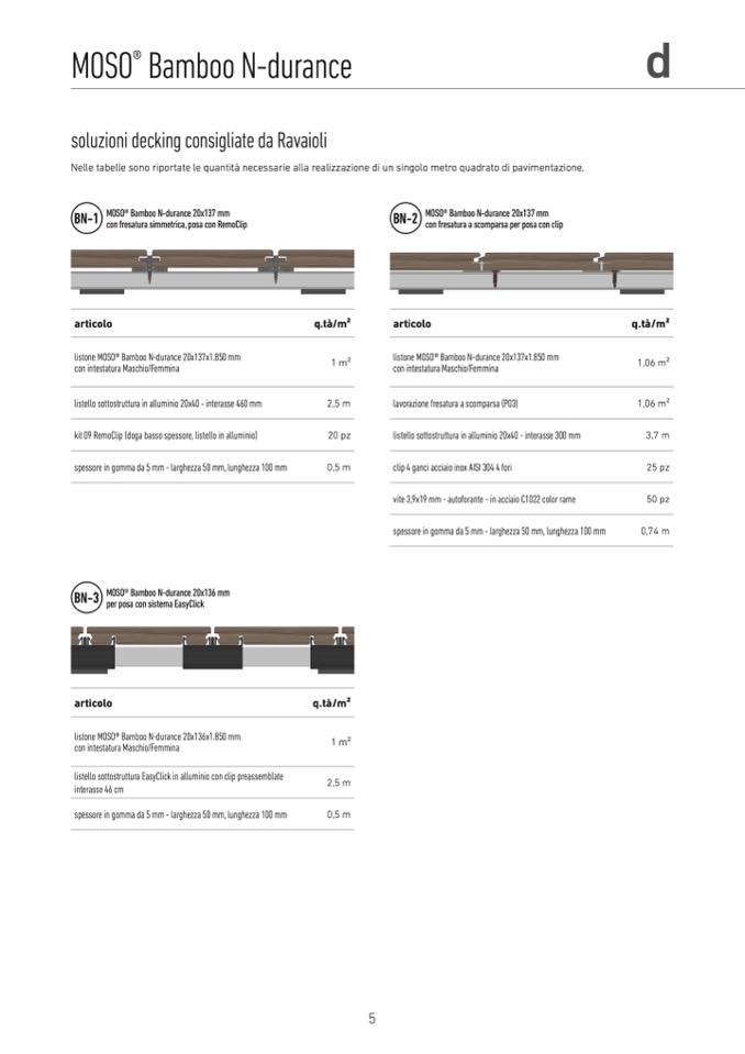 Nelle tabelle sono riportate le quantità necessarie alla realizzazione di un singolo metro quadrato di pavimentazione.