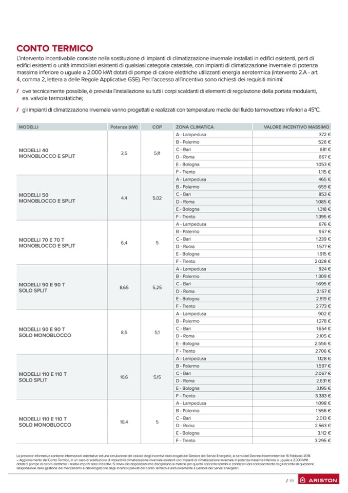 dotati di pompe di calore elettriche. I relativi importi sono indicativi. Si rinvia alle disposizioni che disciplinano la materia per quanto concerne termini e condizioni del riconoscimento degli incentivi in questione.