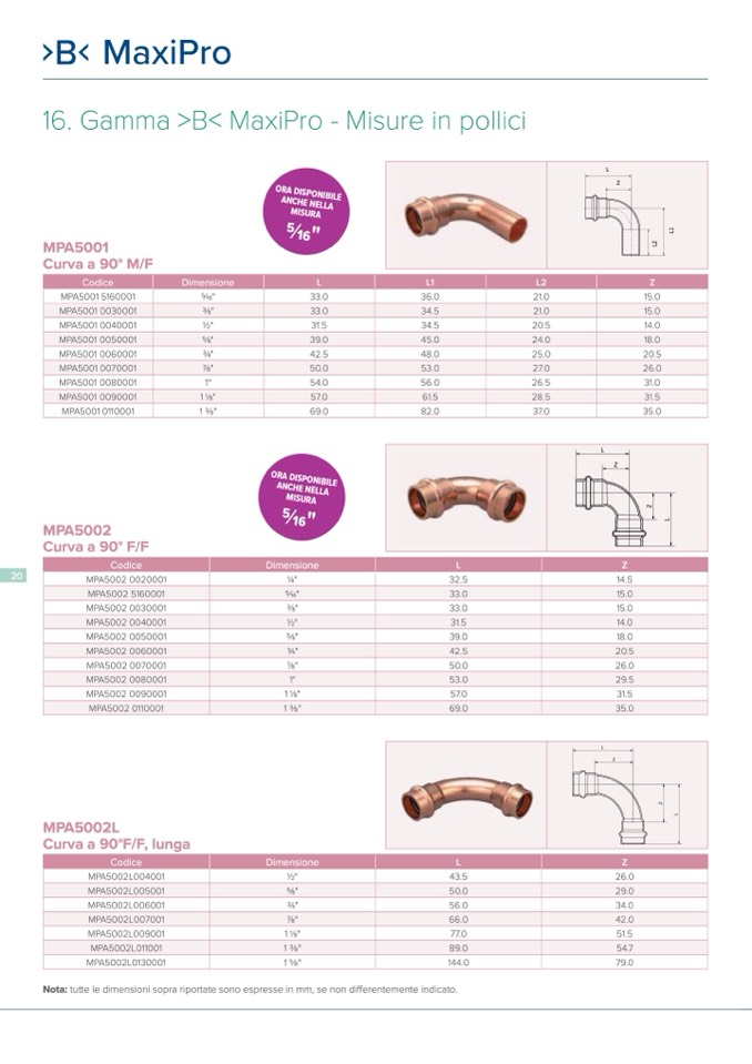 Nota: tutte le dimensioni sopra riportate sono espresse in mm, se non differentemente indicato.