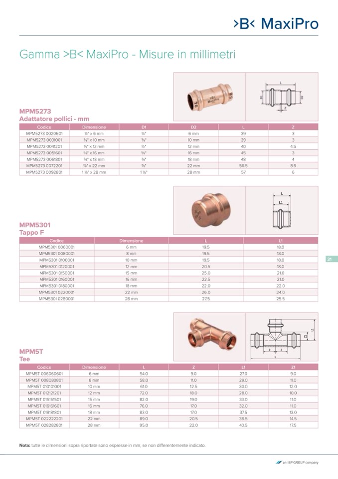 Nota: tutte le dimensioni sopra riportate sono espresse in mm, se non differentemente indicato.