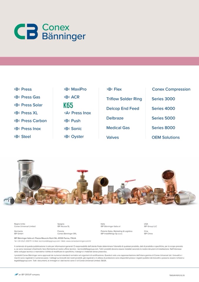 Tel +39 0521 299711 | E-Mail: tecnicoit@ibpgroup.com | Web: www.conexbanninger.com/it/