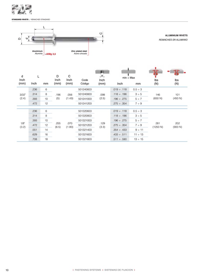STANDARD RIVETS / REMACHES STANDARD