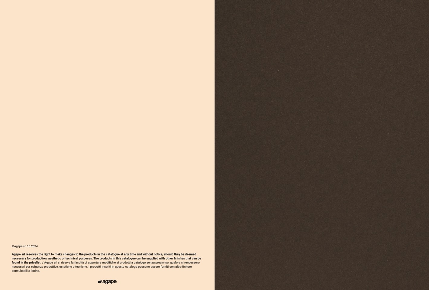 found in the pricelist. / Agape srl si riserva la facoltà di apportare modifiche ai prodotti a catalogo senza preavviso, qualora si rendessero