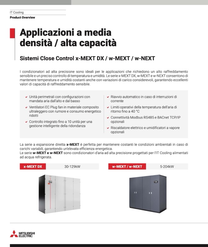 Le serie w-MEXT e w-NEXT sono condizionatori d’aria ad alta precisione progettati per l’IT Cooling alimentati