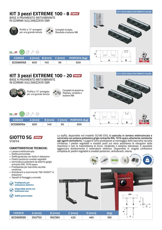 La staffa, disponibile nel modello SG160 EVO, è costruita in lamiera elettrozincata e