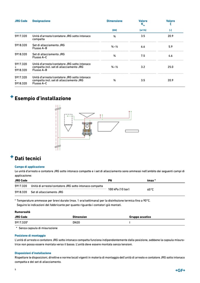 Le unità d’arresto e contatore JRG sotto intonaco compatte e i set di allacciamento sono ammessi nell’ambito dei seguenti campi di