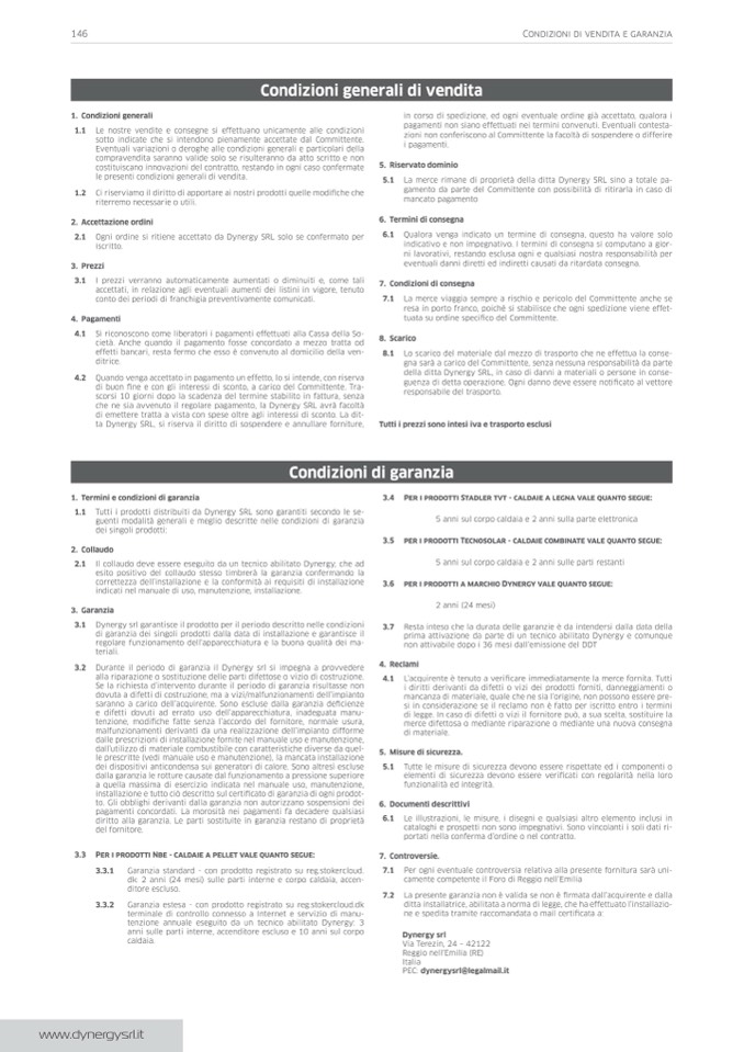 1.1 Tutti i prodotti distribuiti da Dynergy SRL sono garantiti secondo le se-