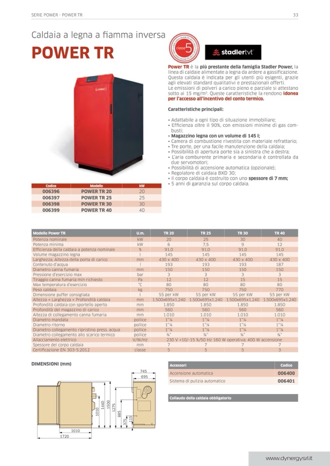 linea di caldaie alimentate a legna da ardere a gassificazione.