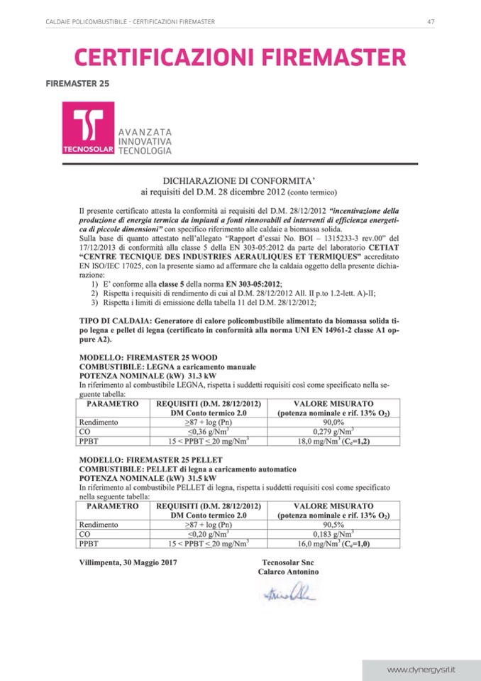 CALDAIE POLICOMBuSTIBILE - CERTIFICAzIONI FIREMASTER