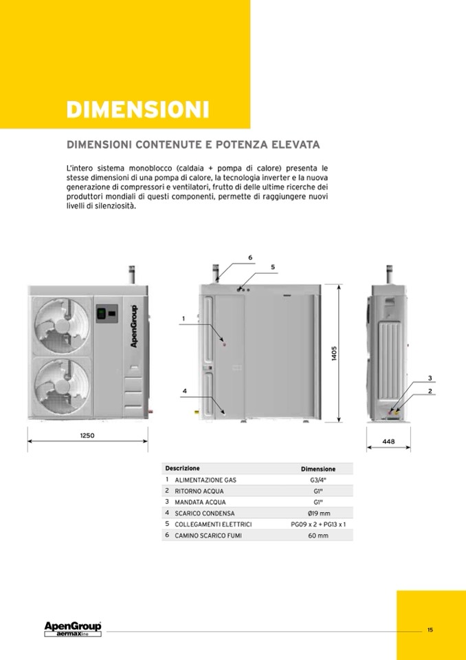 L’intero sistema monoblocco (caldaia + pompa di calore) presenta le