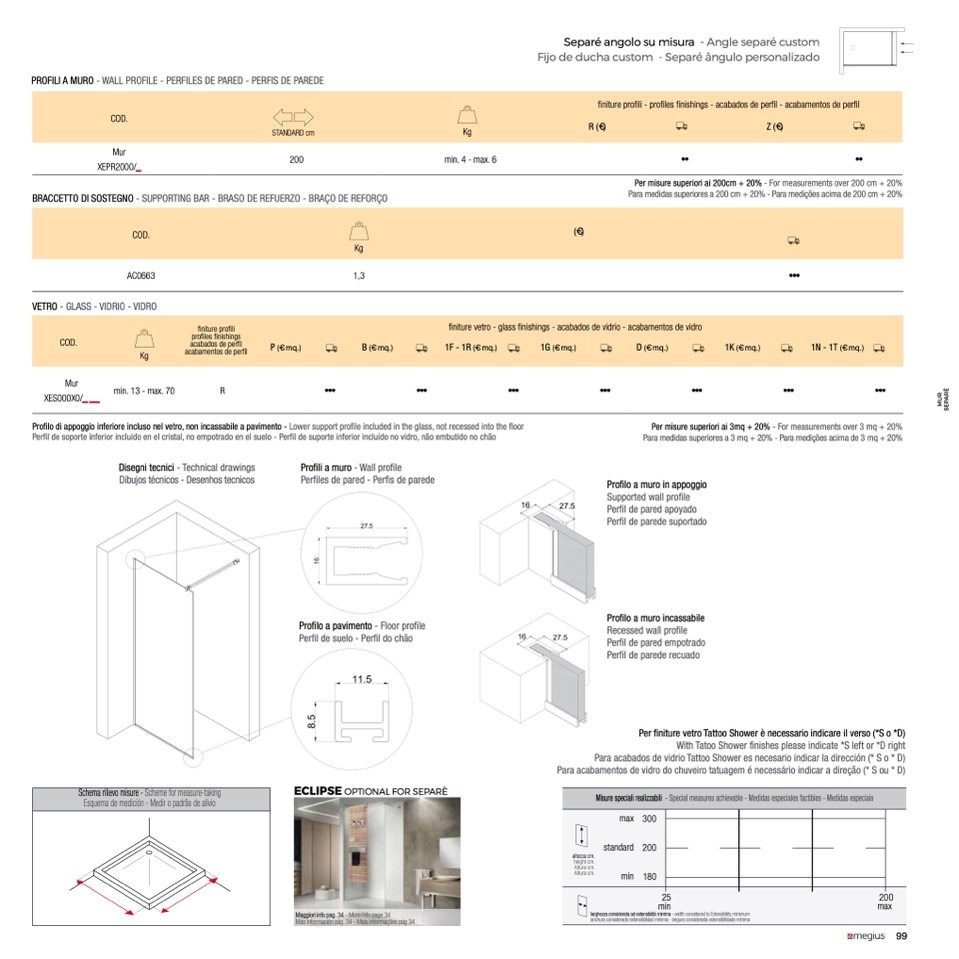 Per finiture vetro Tattoo Shower è necessario indicare il verso (*S o *D)