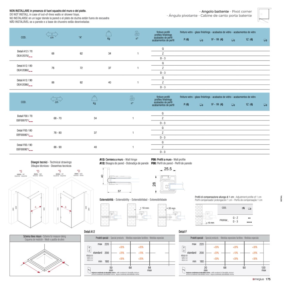 DO NOT INSTALL in case of out-of-lines walls or shower trays.