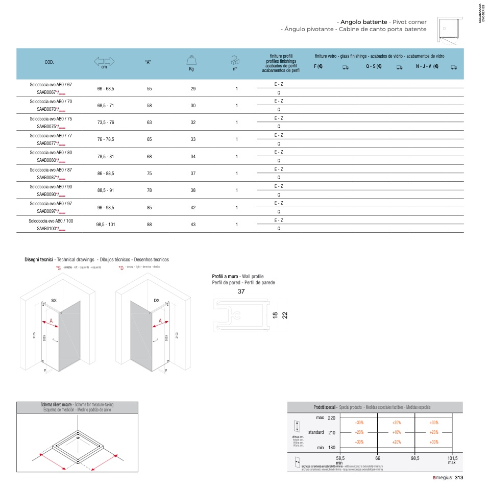 Prodotti speciali - Special products - Medidas especiales factibles - Medidas especiais