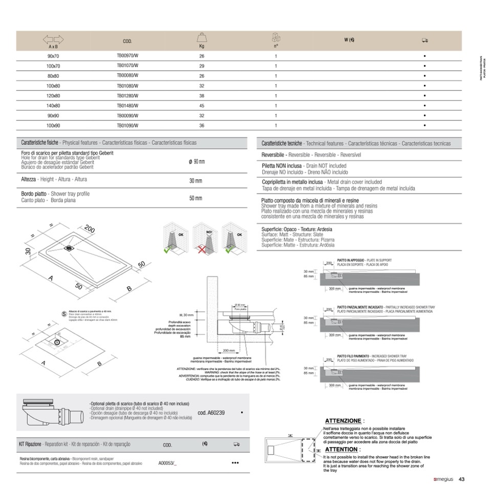 PIATTO PARZIALMENTE INCASSATO - PARTIALLY INCREASED SHOWER TRAY