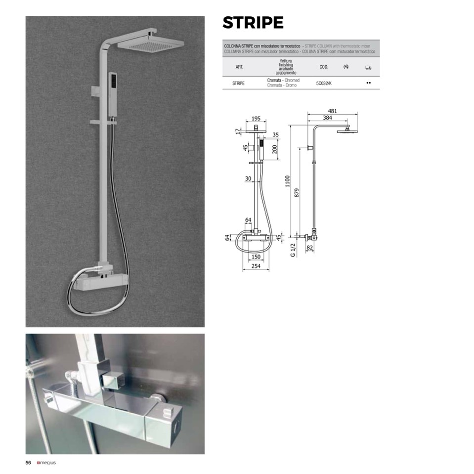 COLONNA STRIPE con miscelatore termostatico - STRIPE COLUMN with thermostatic mixer