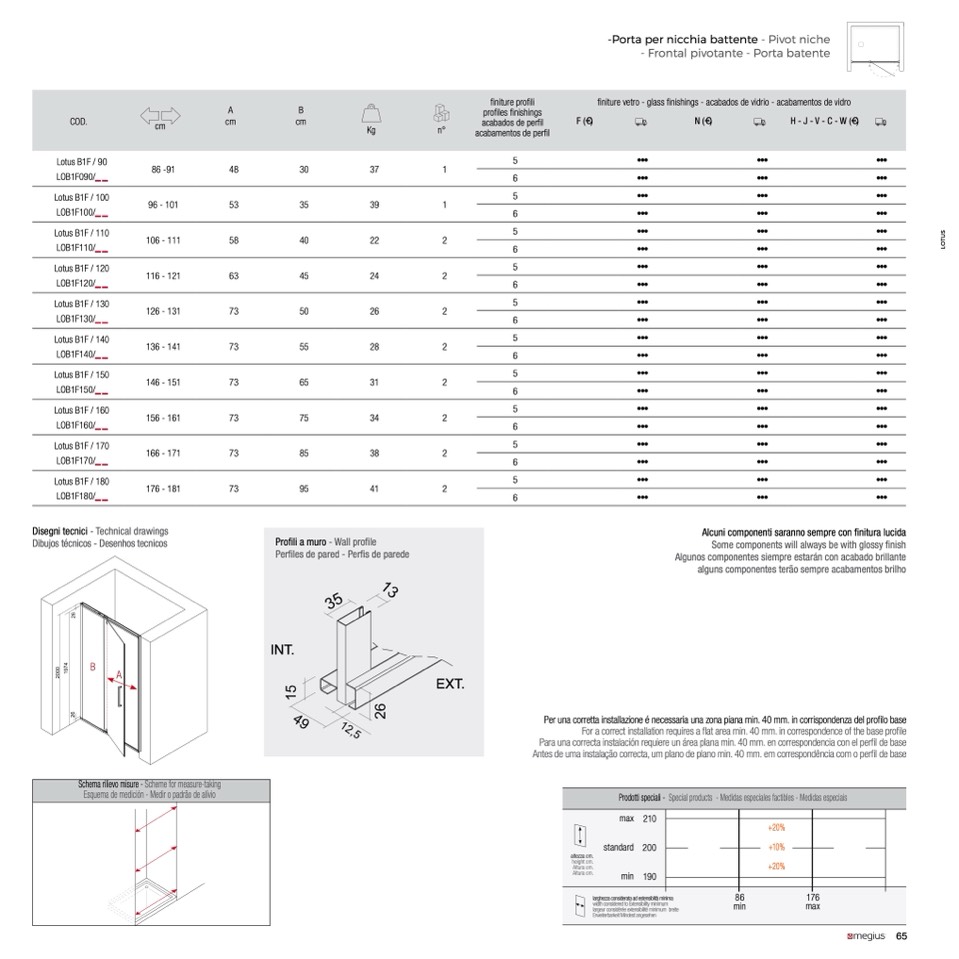 Prodotti speciali - Special products - Medidas especiales factibles - Medidas especiais