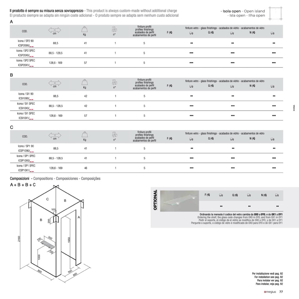 Ordinando la mensola il codice del vetro cambia da 0X0 a 0Y0, e da 0X1 a 0Y1
