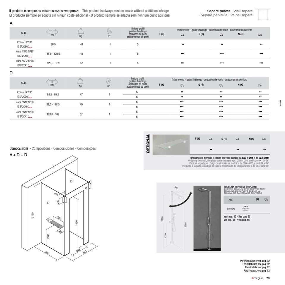Ordinando la mensola il codice del vetro cambia da 0X0 a 0Y0, e da 0X1 a 0Y1