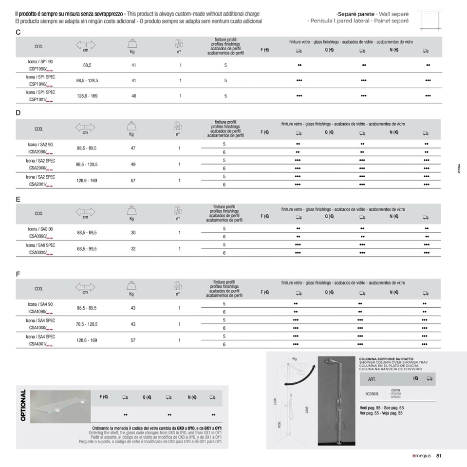 Ordinando la mensola il codice del vetro cambia da 0X0 a 0Y0, e da 0X1 a 0Y1