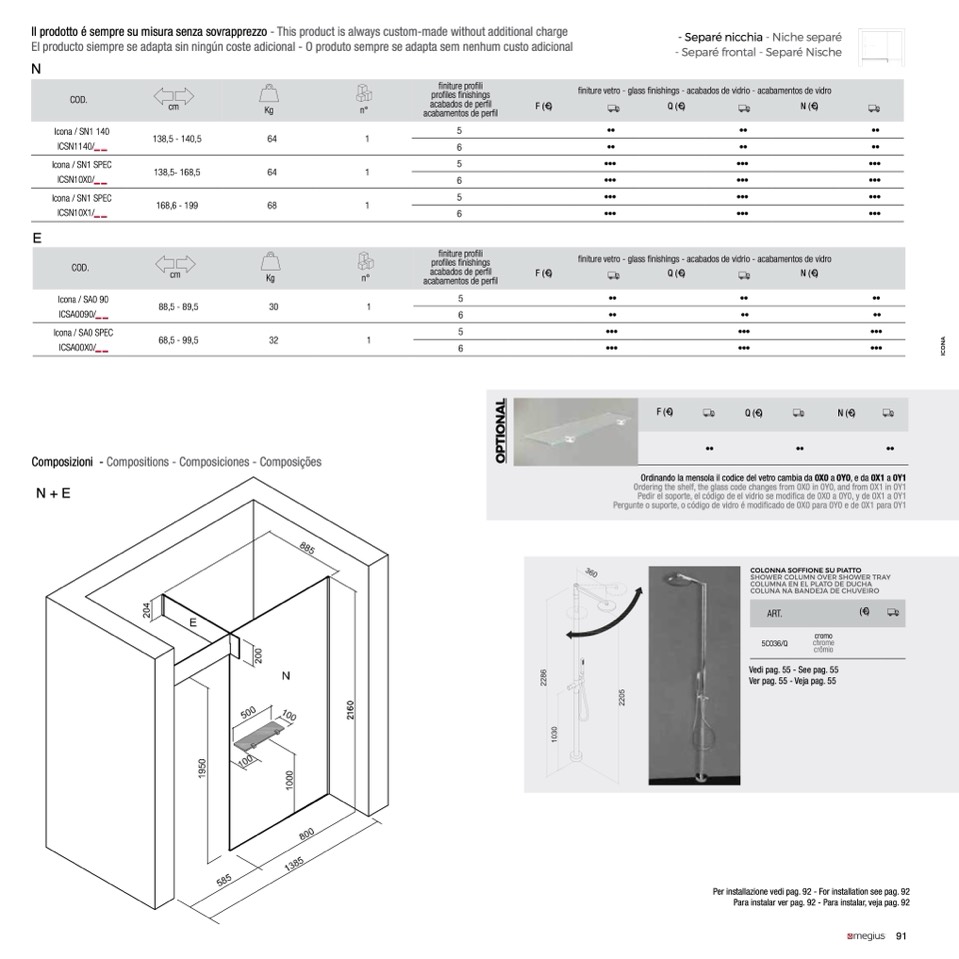 Ordinando la mensola il codice del vetro cambia da 0X0 a 0Y0, e da 0X1 a 0Y1
