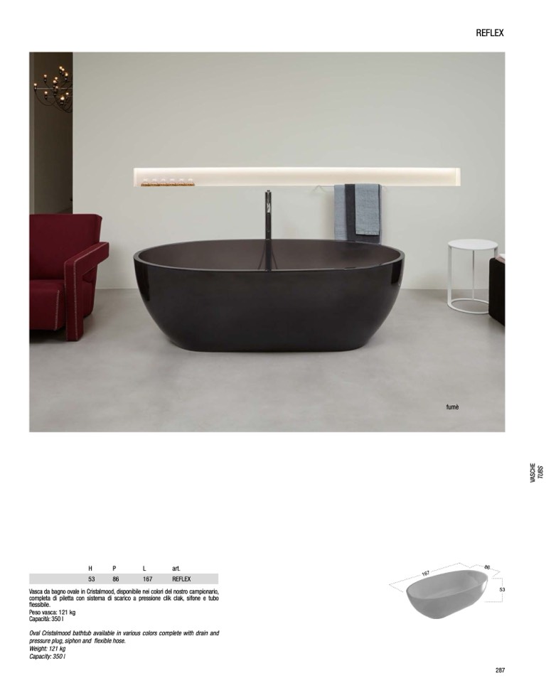 Oval Cristalmood bathtub available in various colors complete with drain and