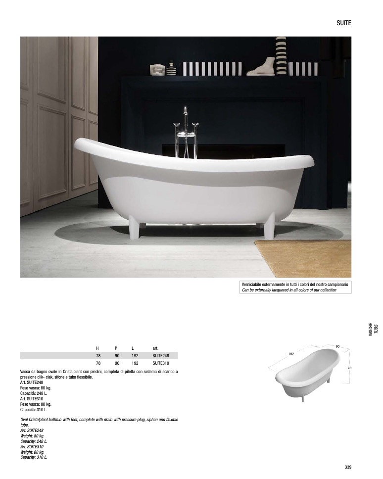 Can be externally lacquered in all colors of our collection