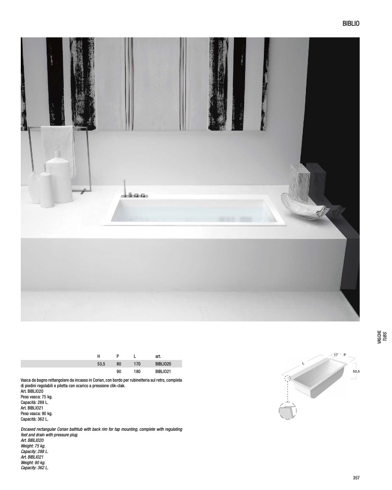 Vasca da bagno rettangolare da incasso in Corian, con bordo per rubinetteria sul retro, completa