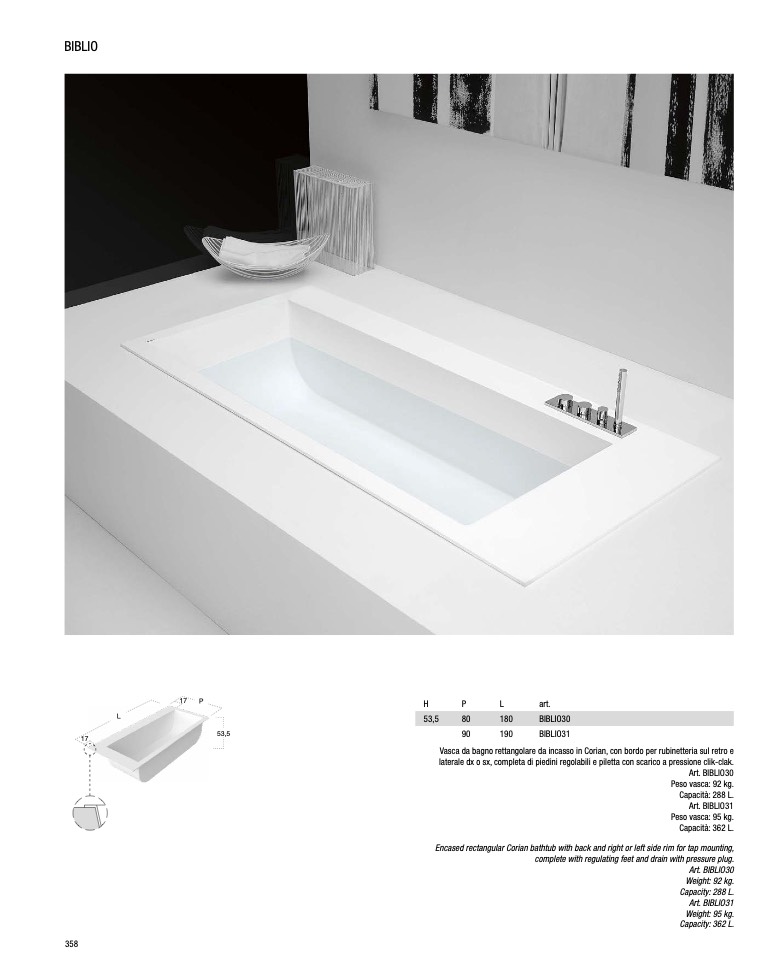 Vasca da bagno rettangolare da incasso in Corian, con bordo per rubinetteria sul retro e