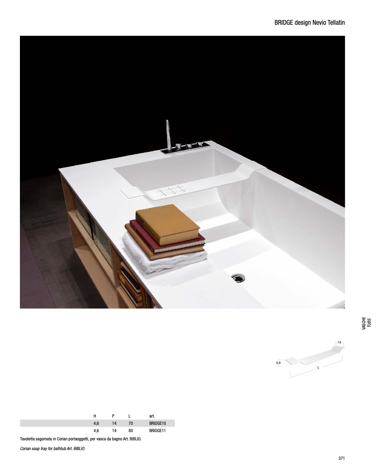 Tavoletta sagomata in Corian portaoggetti, per vasca da bagno Art. BIBLIO.