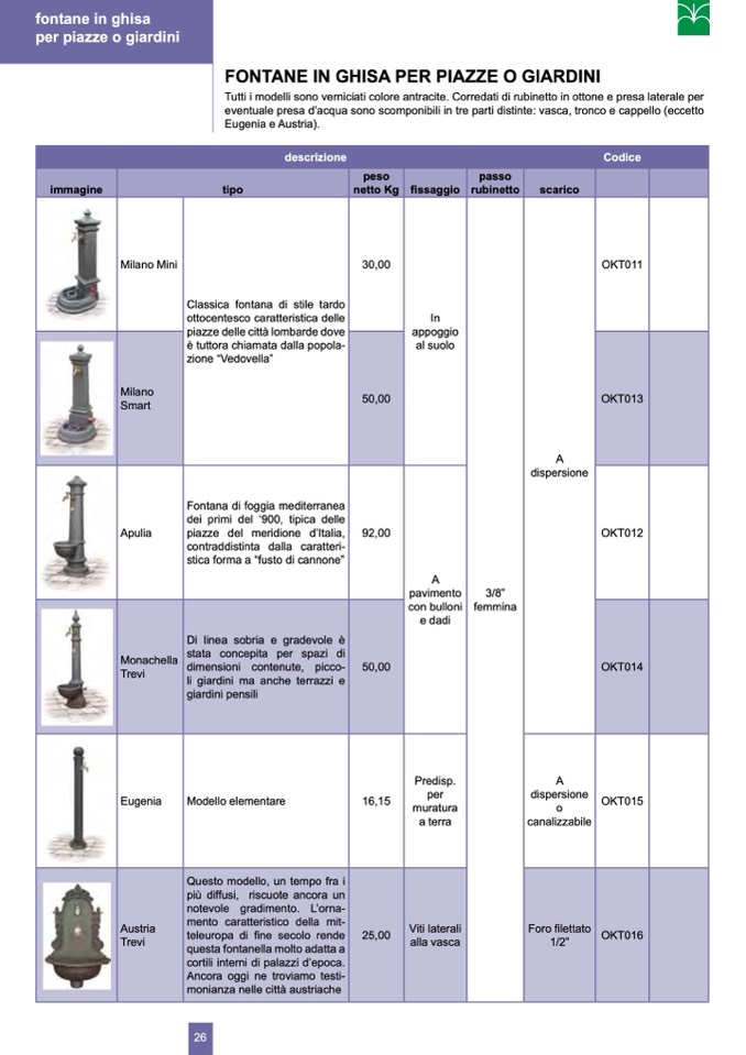 eventuale presa d’acqua sono scomponibili in tre parti distinte: vasca, tronco e cappello (eccetto