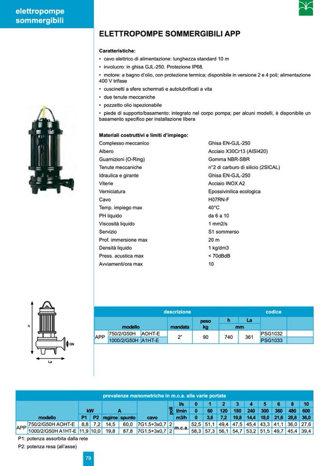 • motore: a bagno d’olio, con protezione termica; disponibile in versione 2 e 4 poli; alimentazione