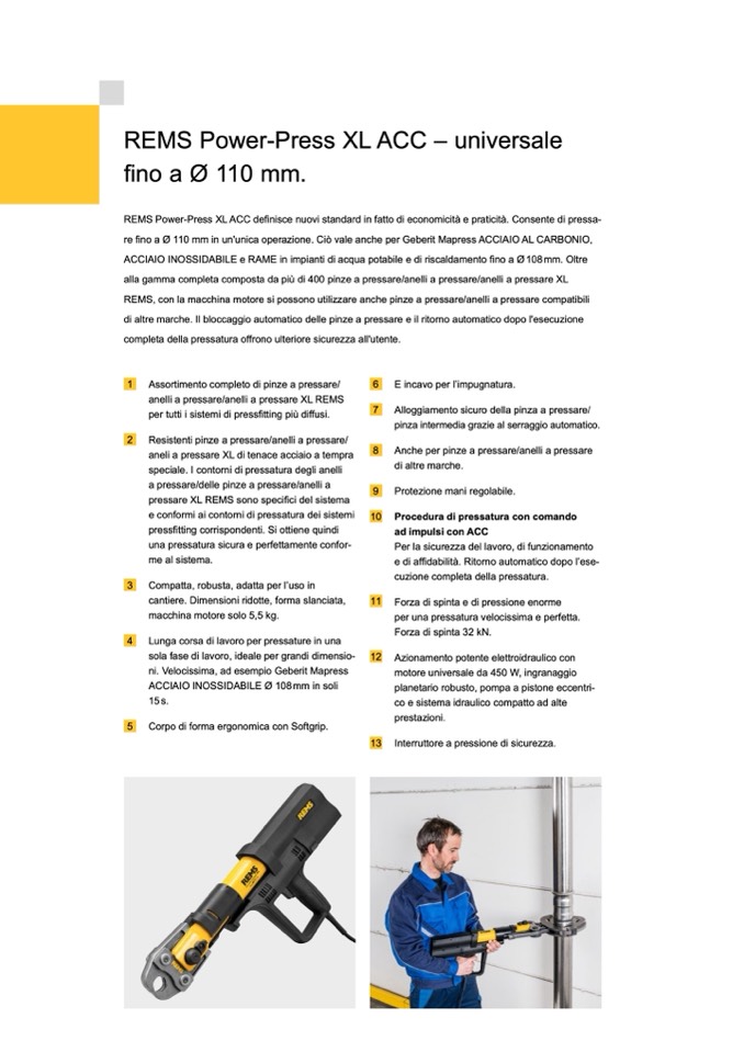 REMS Power-Press XL ACC definisce nuovi standard in fatto di economicità e praticità. Consente di pressa-