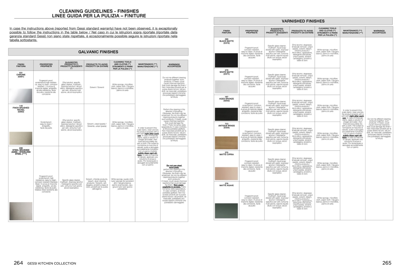 LINEE GUIDA PER LA PULIZIA – FINITURE