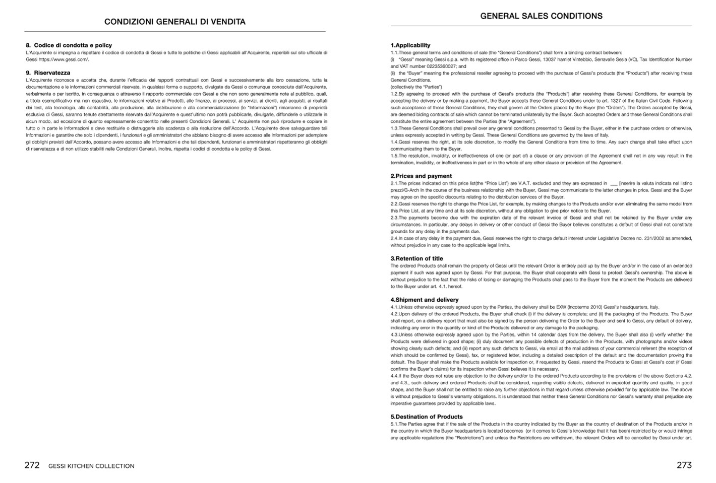 unless expressly accepted in writing by Gessi. These General Conditions are governed by the laws of Italy.