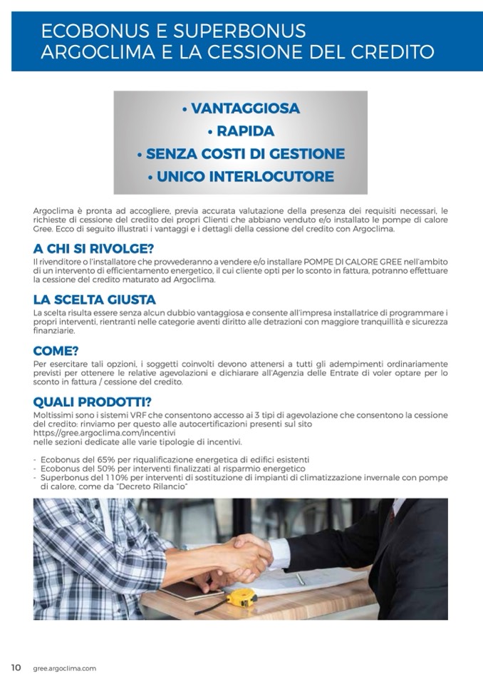 Gree. Ecco di seguito illustrati i vantaggi e i dettagli della cessione del credito con Argoclima.