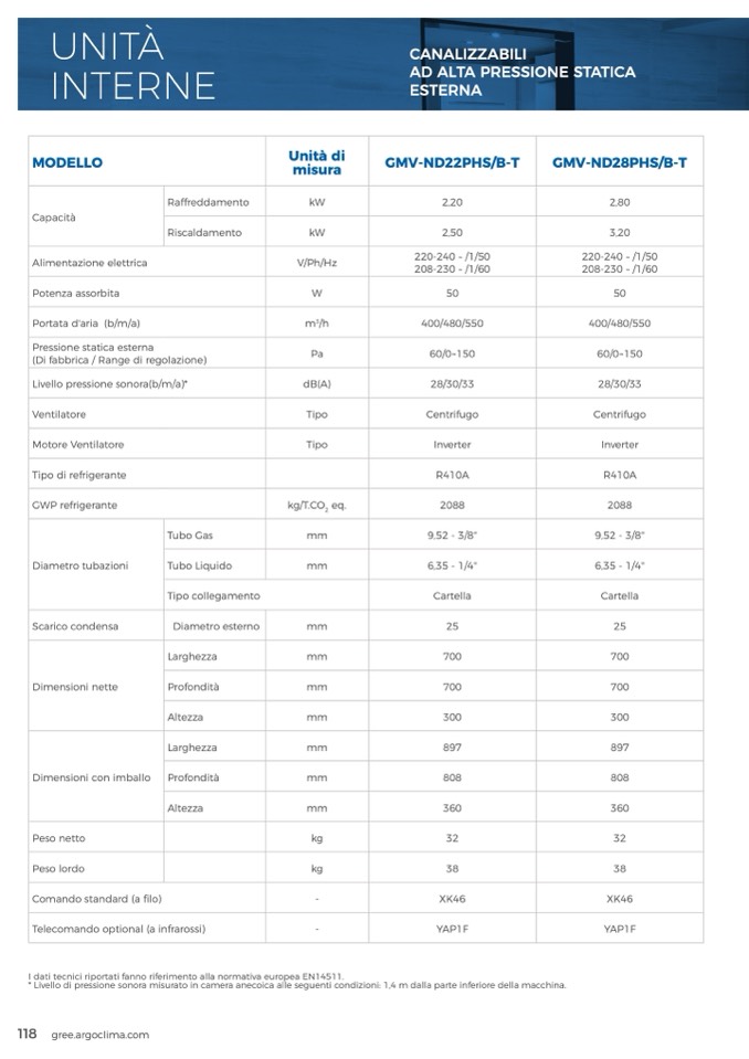 I dati tecnici riportati fanno riferimento alla normativa europea EN14511.
