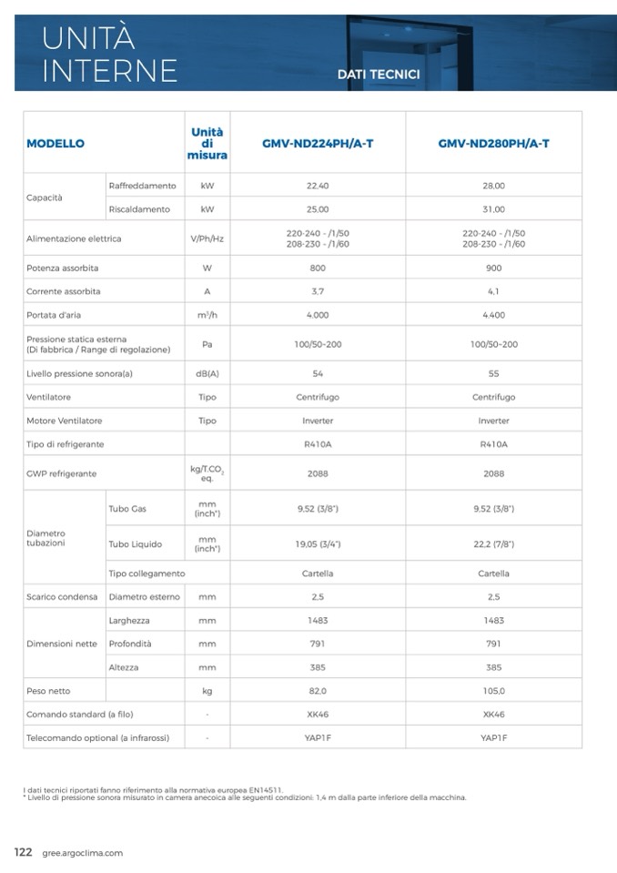 I dati tecnici riportati fanno riferimento alla normativa europea EN14511.