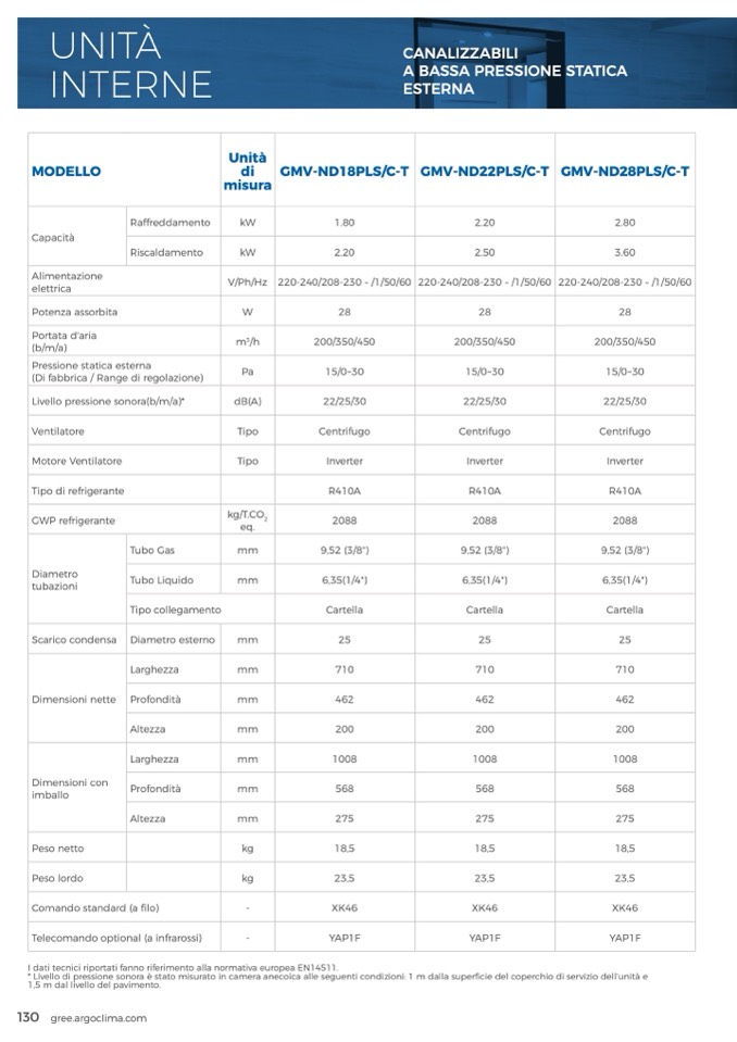 I dati tecnici riportati fanno riferimento alla normativa europea EN14511.
