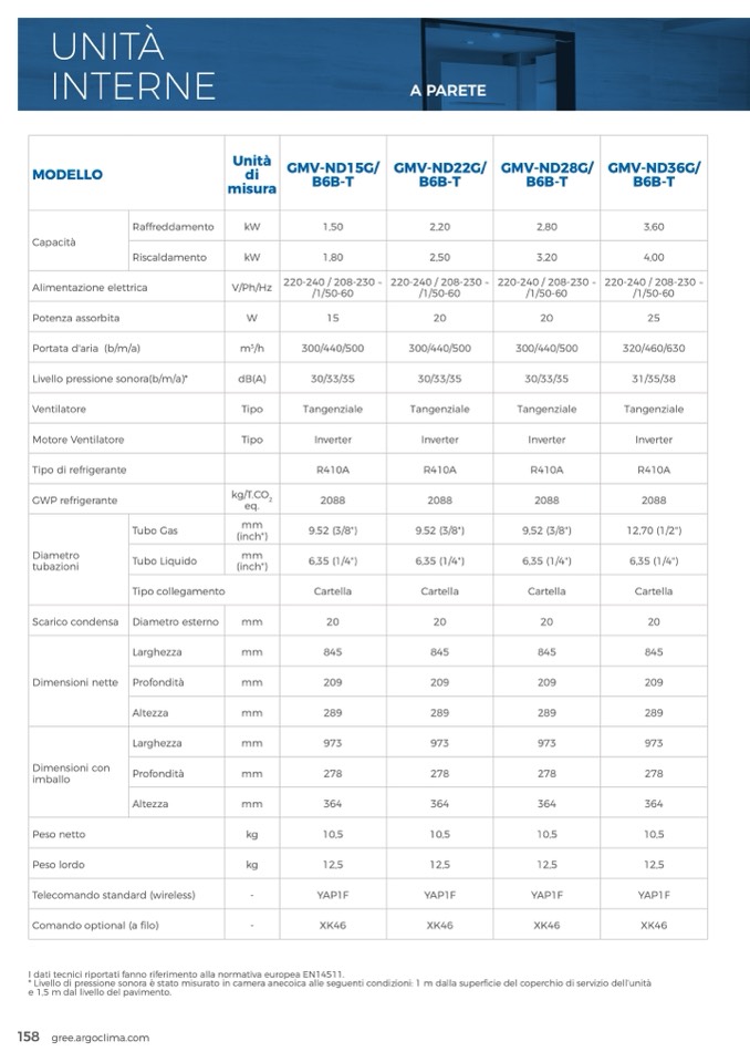 I dati tecnici riportati fanno riferimento alla normativa europea EN14511.