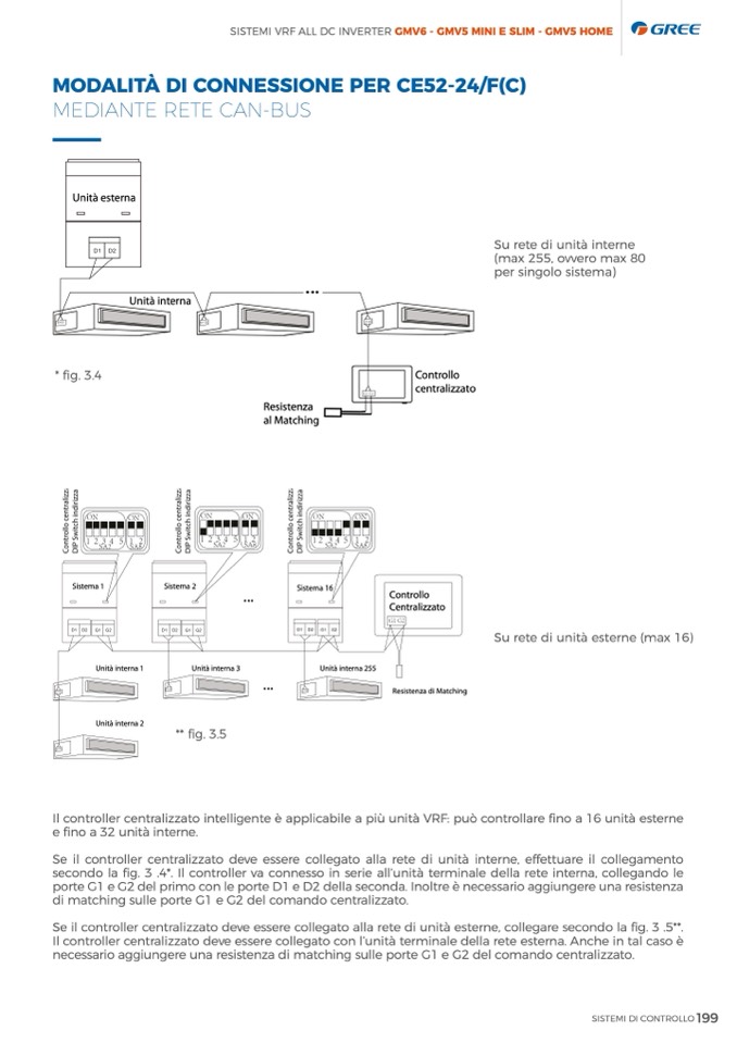 Se il controller centralizzato deve essere collegato alla rete di unità esterne, collegare secondo la fig. 3 .5**.